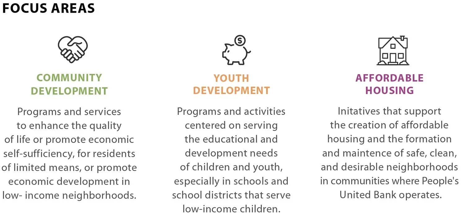 The People’s United Community Foundation (PUCF) is committed to investing in programs and services that enhance residents' quality of life, promote economic development, and support the educational and developmental needs of children and youth, with a focus on underserved communities.